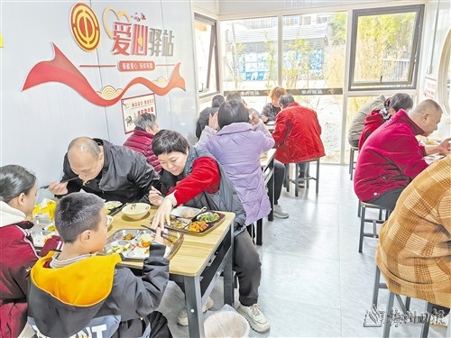 居民在梅江區江南街道中心壩社區鄰裏餐廳就餐。(中心壩社區供圖)