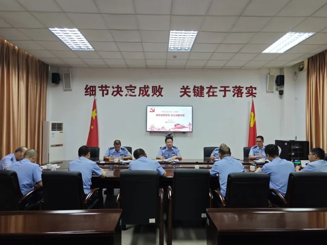 為深入推進全麵從嚴治黨,抓實作風建設成效,推動黨員幹警明紀律、轉作風、提效能,根據所黨總支2023年紀律教育學習月活動安排,8月7日,市司法局黨組成員、市戒毒所黨總支書記、所長何科東為一大隊黨支部上了一堂題為《錘煉堅強黨性 自覺清廉守規》的專題黨課。