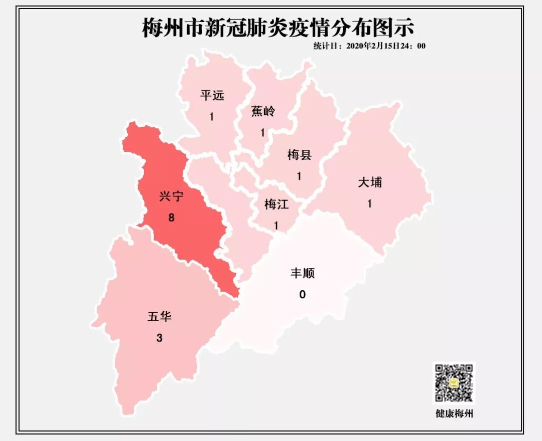 梅州市累計確診的16例病例中,興寧市8例,五華縣3例,梅江區、梅縣區、大埔縣、平遠縣、蕉嶺縣各1例;男性9例,女性7例;年齡介於3-62歲之間。