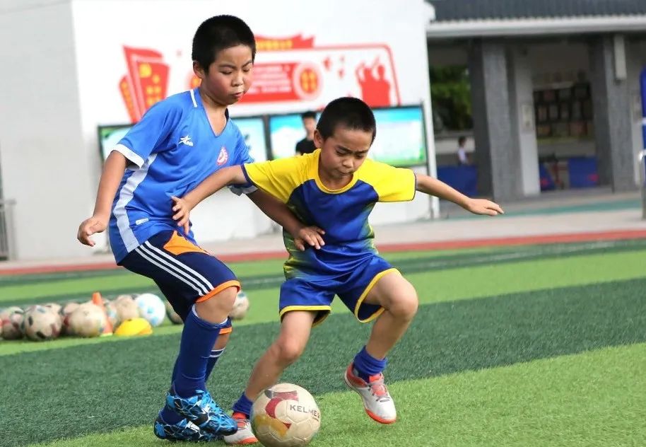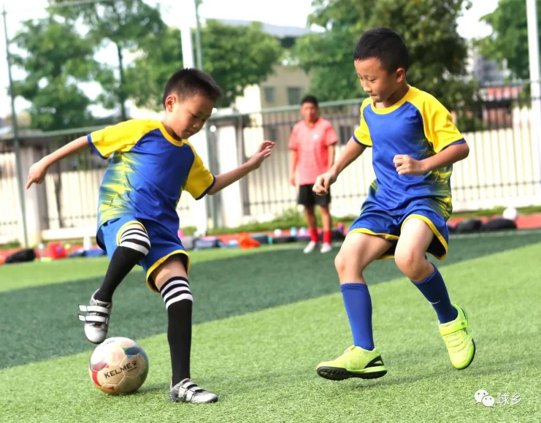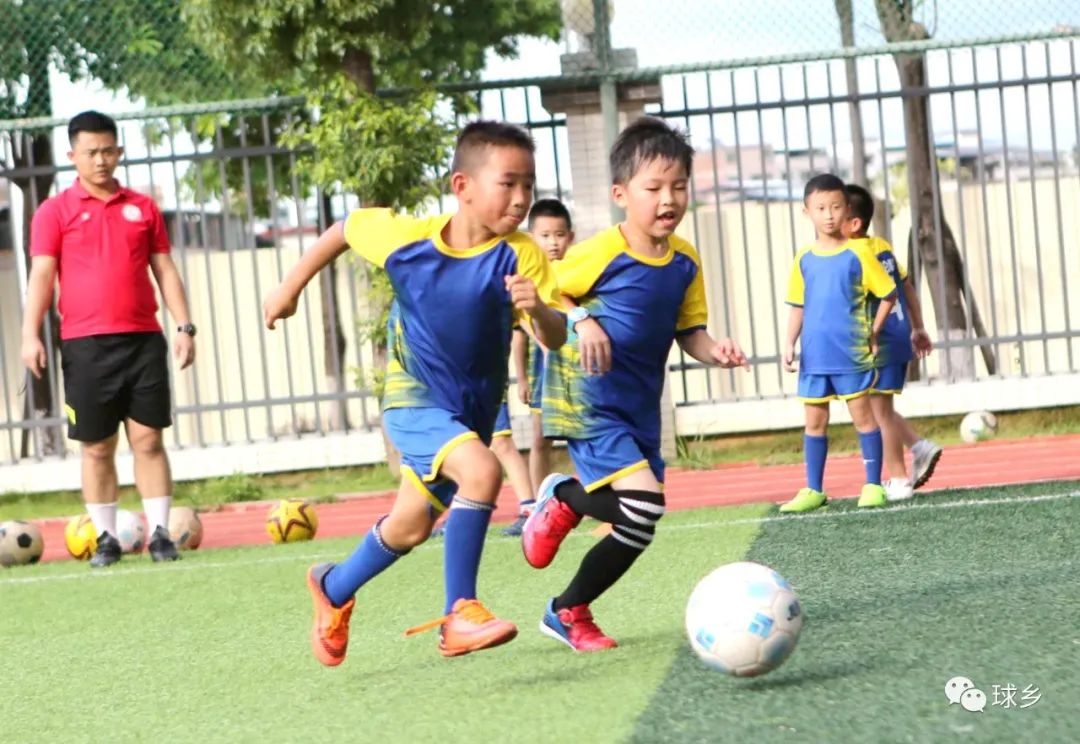 下午四點半,小編在新民小學足球場上看到,二十多名一至三年級的小學員們分成兩組,在三名教練的指導下,分別進行著控球、扣球、拉球等基本功訓練和小範圍的一對一對抗訓練。