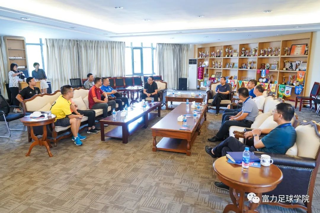 考察團一行聽取了富力足球學校辦學情況、辦學成績等方麵的介紹,高度評價了我校的整體建設規劃、辦學理念及發展模式。