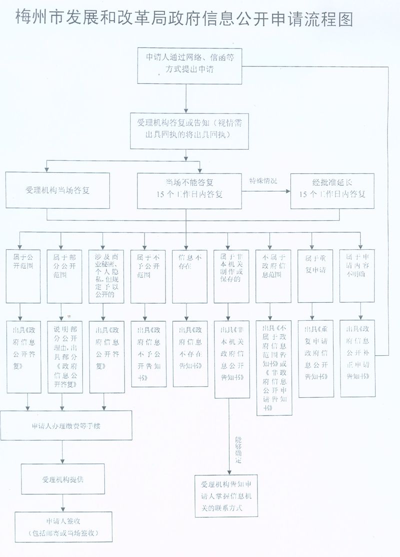 8.同一申請人向受理機構就同一申請事項重複提出申請的,告知申請人不再重複答複。詳見《梅州市發展和改革局政府信息公開申請流程圖》(附件3)。