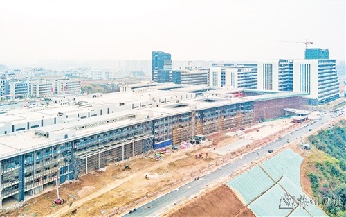 博敏電子新一代電子信息產業投資擴建項目長360米、寬80米的主體生產廠房已封頂。(林翔 攝)