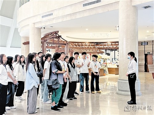 香港離島區青少年交流團參觀中國客家博物館,深入了解梅州的曆史文化和風土人情。(何梓瑜 攝)