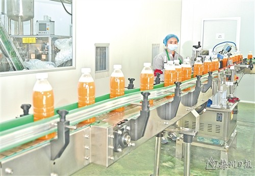 飛龍果業臍橙汁灌裝生產線。(袁誌鵬 攝)