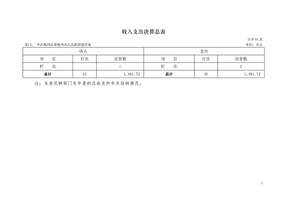 2017年中共梅州市委梅州市人民政府接待處決算公開
