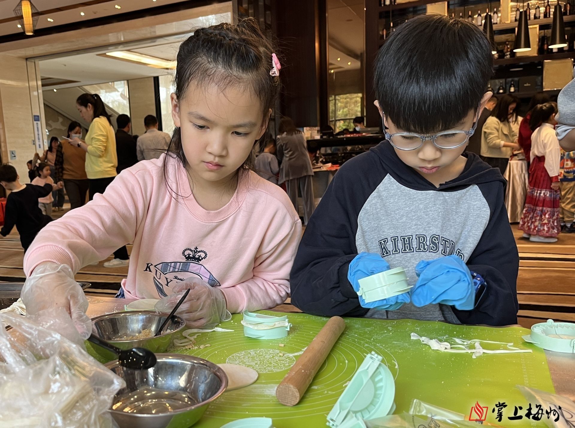 寫春聯、剪窗花、做燈籠、包餃子……活動現場以“體驗中華優秀文化尋年俗找年味”為主題開展係列活動,各式各樣的活動煥發著中華優秀傳統文化的獨特魅力。這邊,來自東方驕子書畫院的書法家大顯身手,一起一落、一撇一捺間,一副副吉祥喜慶的春聯逐漸擺滿桌麵。另一旁的“手藝人”也不甘示弱,一幅幅栩栩如生的窗花藝術品呈現在眾人眼前,不僅有各式各樣的“福”字,還有鮮活的騰龍形象。“五個兄弟住在一起,名字不同高矮不齊。打一身體部位。”“我知道!是手指!”……現場還有精彩的猜燈謎環節,孩子們冥思苦想、爭先恐後、各出奇招,解開了一條又一條謎底,禮物也成功收入囊中。
