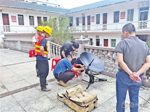 “平遠縣泗水鎮鎮政府衛星包順利開通”“阿哥,告訴阿媽,我們都沒事……”6月17日上午,梅州移動抗洪搶險隊伍攜帶衛星包,隨省應急救援人員乘坐直升機飛往受災嚴重的泗水鎮,並在10分鍾內完成微型基站架設、接入網絡,打通了應急通信保障“生命線”,供現場人員通過語音通話、短信、上網開展應急搶險指揮調度,當地群眾也紛紛第一時間向家人報平安。