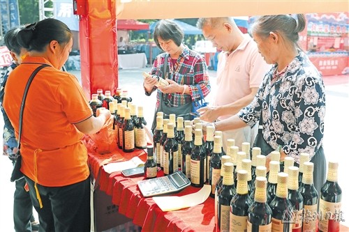 在古法醬油銷售攤位,市民正在了解、選購產品。