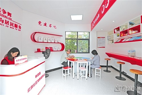 在湯坑鎮海舟園,可以看到不少群眾在公園中散步、閑坐、聊天。“以前這裏很髒很亂,地麵坑窪不平,雜物堆積如山,到處臭氣熏天。”湯坑鎮紅旗社區黨支部書記徐柳娜坦言,在改造工作推進的過程中遇到了種種困難,社區充分發揮黨員先鋒模範作用,積極向周邊群眾解讀政策,闡明改造的好處和實惠,充分聽取居民的訴求,最終贏得了大家的理解和支持。如今,改造後的海舟園成為了周邊居民茶餘飯後休閑的好去處。紅旗社區黨群服務點內,不少群眾正在閱讀。該服務點除了可供市民小憩,還可以提供免費飲用水、雨傘外借等服務,打通便民服務“最後一米”。