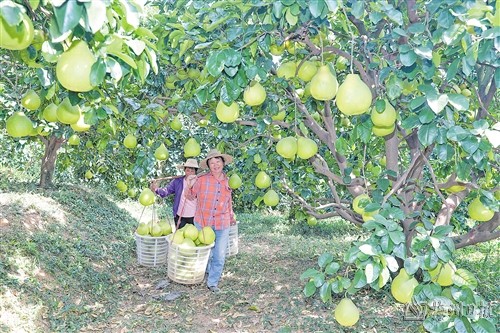 近年來,梅縣區以創建國家現代農業產業園為抓手,聚焦做大做強金柚主導產業,推動金柚種植、生產、銷售、加工、文化等一體化發展,促進了金柚產業高質量發展,帶動了農民增收致富。目前該區有柚農5萬多戶,金柚人均年收入1萬多元,占農業人口人均年收入的40%和主產鎮農民人均收入80%以上,金柚已成為農民的“搖錢樹”“致富果”。
