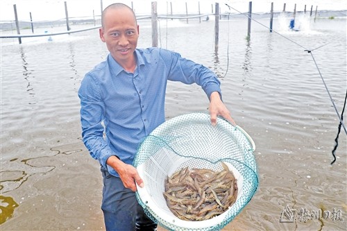 基圍蝦養得好,還要賣得出。為打開本地市場,羅利琪除了跟蝦販合作,還主動將養殖的基圍蝦送到本地商超,拓寬銷售渠道。“以前我們超市銷售的基圍蝦大部分是從福建漳州進貨的,聽說有本地養殖的基圍蝦,我們很感興趣,特意到養殖基地進行調研,了解基地的養殖品種、養殖規模、技術成熟度、產品質量、食品安全保障措施等情況。”梅州市喜多多超市連鎖有限公司采購經理羅國海告訴記者,通過現場調研,該公司與羅利琪達成了合作,以每斤25元到30元的價格收購基圍蝦。