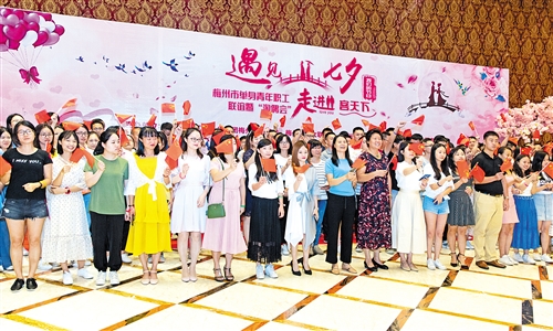 昨日,梅州市單身青年職工聯誼暨“淘偶會”走進客天下迎七夕活動在梅城客天下旅遊產業園舉行。來自全市各級機關、國有企事業單位和中央、省屬駐梅單位的200多名單身青年職工參加活動。