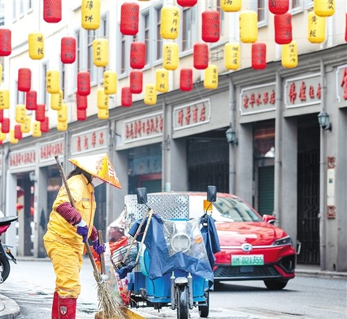 姚雪芬隻是環衛工的其中一員。春節期間,全市環衛工積極奮戰,有效保證了生活垃圾等及時清運、及時處置,為廣大市民營造幹淨整潔的節日環境。