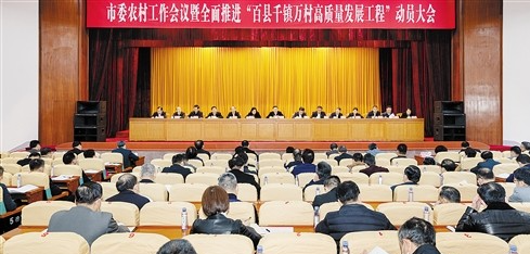 昨日,市委農村工作會議暨全麵推進“百縣千鎮萬村高質量發展工程”動員大會在市委禮堂召開。會議的主要任務是,堅持以習近平新時代中國特色社會主義思想為指導,深入貫徹黨的二十大精神,認真落實中央和省委農村工作會議精神,總結全市“三農”工作,部署全麵推進鄉村振興工作和“百縣千鎮萬村高質量發展工程”,在新起點上努力建設農業強市、促進城鄉區域協調發展,為梅州蘇區加快振興、共同富裕打下堅實基礎。市委書記馬正勇出席會議並講話,市委副書記、市長王暉主持會議,市政協主席楊朝暉出席會議,市委副書記王慶利總結部署全市農業農村和實施鄉村振興戰略工作。