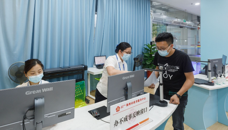 “辦不成事”反映窗口已在我市市縣兩級亚博网址链接 中心全覆蓋開設。(圖片來源:梅州日報 林翔 攝)