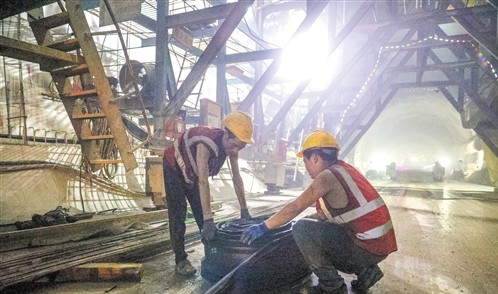 “注意控製鋼架間距!”“午後下了一陣雨,注意清潔路麵。”狹長的隧道裏,中鐵十二局2標項目部總工程師李廣濤在幾個點位間來回奔忙,不時通過對講機與隧道外同事聯係。他說,所有的工序都要做到無縫銜接。