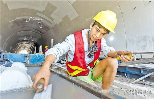 梅龍高鐵項目建設者奮戰工地,力爭項目早日建成通車。(林翔 攝)