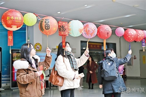 在少兒活動區,記者看到,不少家長攜帶著孩子穿梭在各排書架前,認真尋找夾在書中的五福卡,並到服務台參與“滾滾樂”閱讀抽獎活動。“為豐富廣大讀者的文化生活,營造文明和諧、喜慶祥和的春節傳統文化氛圍,我們江南購書中心和梅縣四閱書店於春節期間開展了‘金龍賀歲’新春遊園活動。”梅州新華書店總經理助理兼閱讀服務中心經理羅寶君說,新春遊園活動從 2月3日持續至13日,包含了新年打卡、視頻送祝福、送春暉、製作非遺手工燈籠、新春集福、新春拓印等活動,讓廣大市民在書店裏邂逅年味和詩意,在歡樂中感受傳統文化的魅力。
