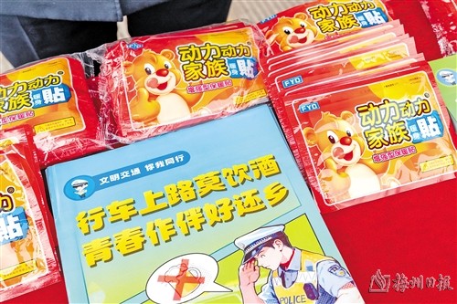 在梅州城西高速入口春運執勤點,除了宣傳單,交警還為過往司乘準備保暖貼,暖身更暖心。(圖片來源:梅州日報)