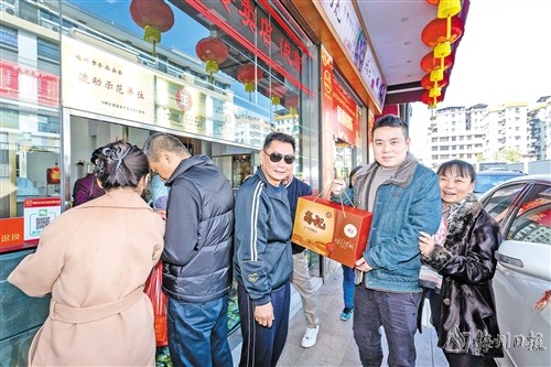 不少準備返工的群眾選擇客家鹽焗食品做伴手禮,不僅分享“梅州味道”,更是傳遞了“人情味”。(圖片來源:梅州日報)