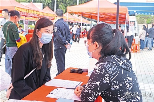 記者在現場看到,此次招聘活動組織了廣東科倫藥業有限公司、梅州伊利冷凍食品有限責任公司、梅州聖戈班汽車玻璃係統有限公司等100家企業進場招聘,提供的崗位涵蓋汽車維修、紡織、新材料、家政服務、財務會計、餐飲等多個領域。活動現場還設置了人社政策谘詢、住房公積金政策宣傳、殘疾人就業谘詢等多個谘詢台,為廣大求職者答疑解惑。