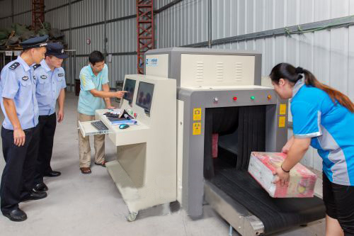 在梅縣區新縣城的中通速遞和天天快遞兩個中心物流點,記者看到所有從梅州寄出的快件都要經過X光機檢查,中通快遞技術員王華增說:“可通過肉眼判斷快件形狀是否屬於槍支、彈頭等違禁品,然後根據不同的顏色判斷被測物品的成分和種類。”據介紹,常見的禁寄品有電池、充電器、刀具和液體等,一旦發現可疑的快件會馬上進行開箱驗視。據悉,我市每天寄出快件有5萬多件、收到的有12萬多件,有29家物流企業已投入使用X光機,以科技手段嚴把快件寄送的安全關口。
