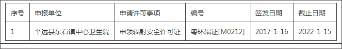 梅州市環境保護局2017年1月16日輻射安全許可證審批結果公示