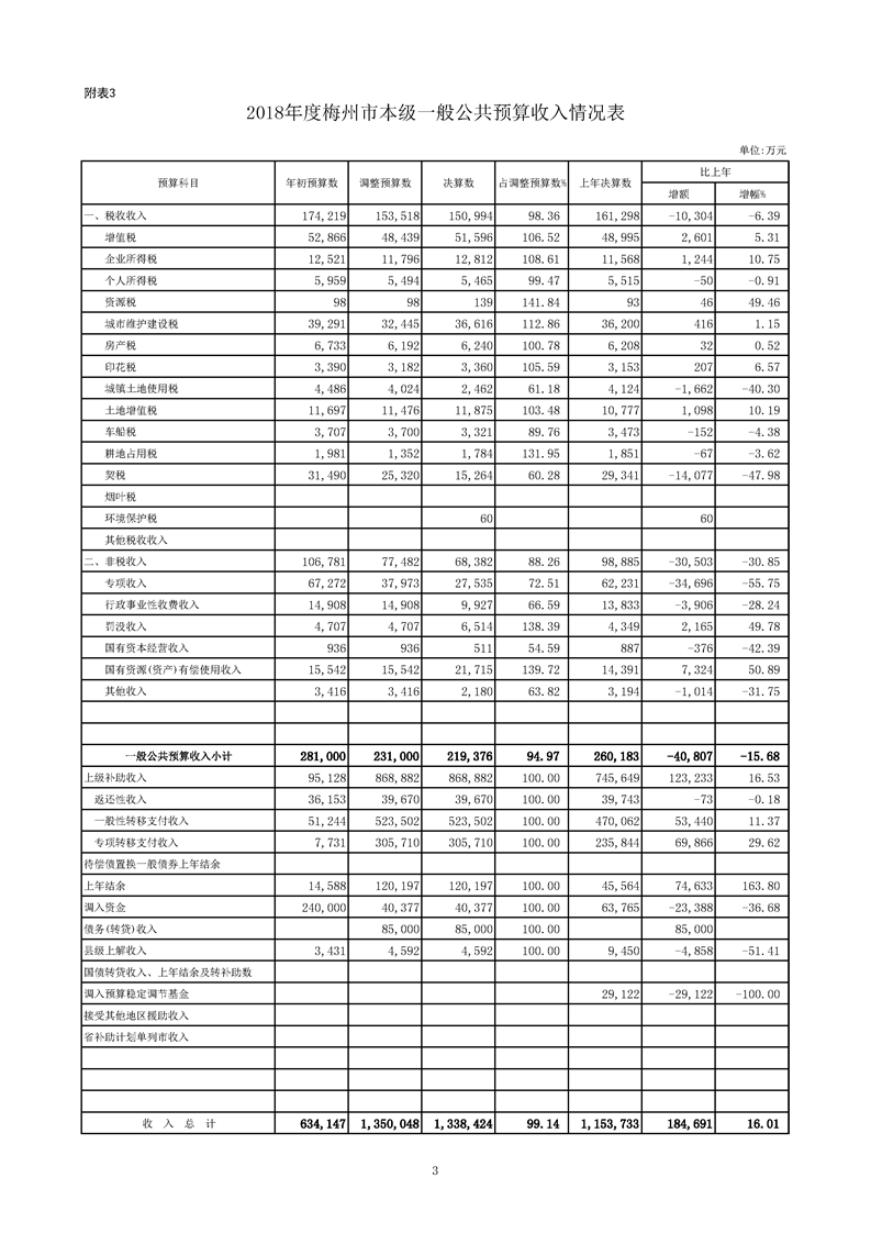 (附表3)2018年度市本級一般公共預算收入情況表