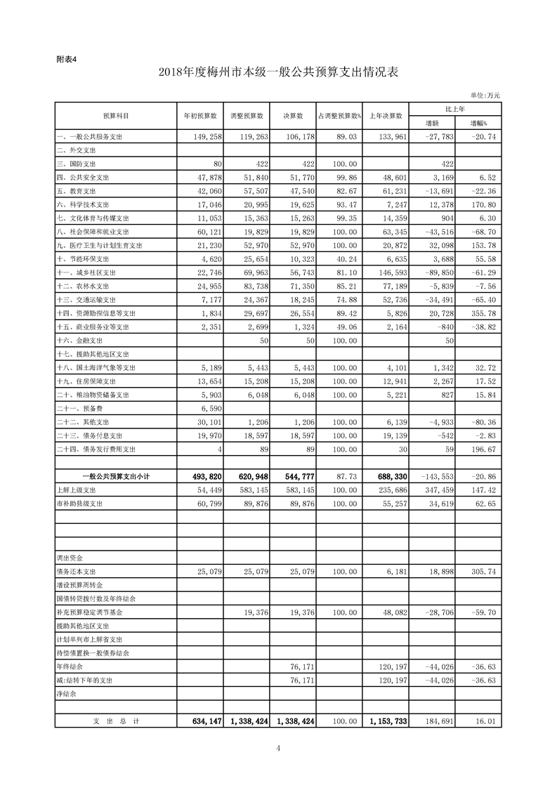 (附表4)2018年度市本級一般公共預算支出情況表