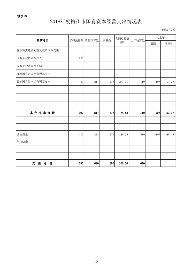 (附表10)2018年度梅州市國有資本經營支出情況表