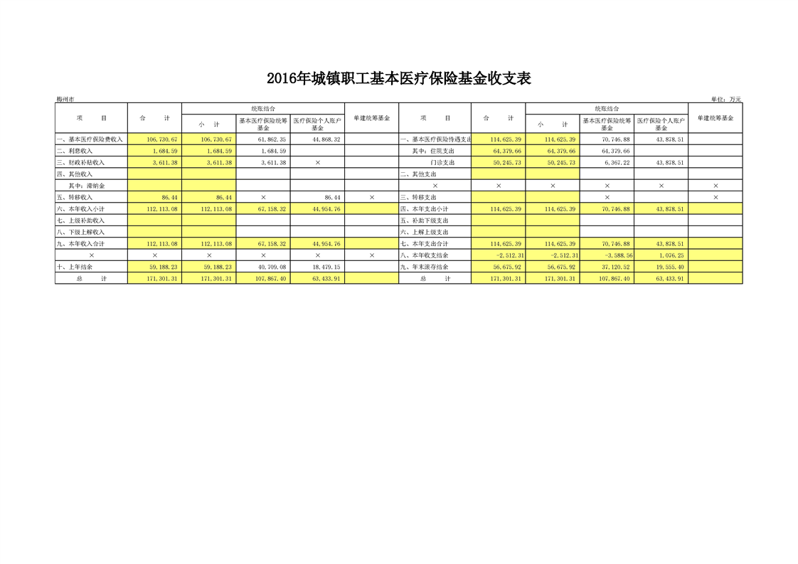 2016年城鎮職工基本醫療保險基金收支表