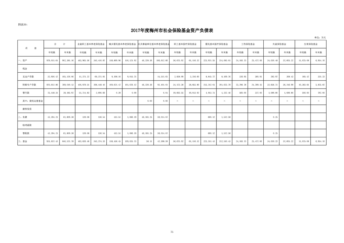 附表30:梅州市社會保險基金資產負債表