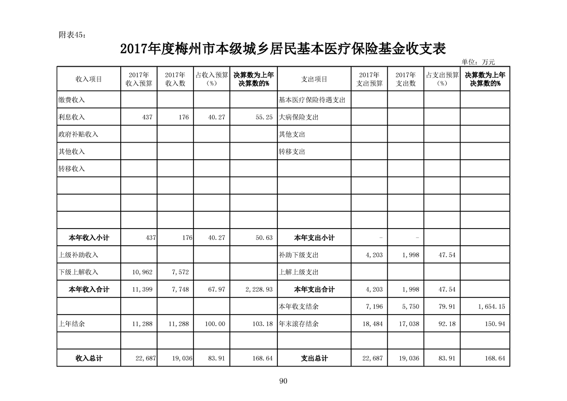 附表45:市本級城鄉居民基本醫療保險基金收支表