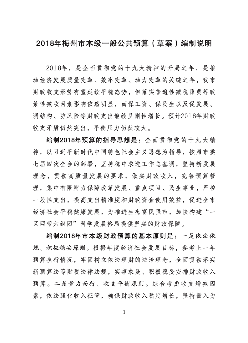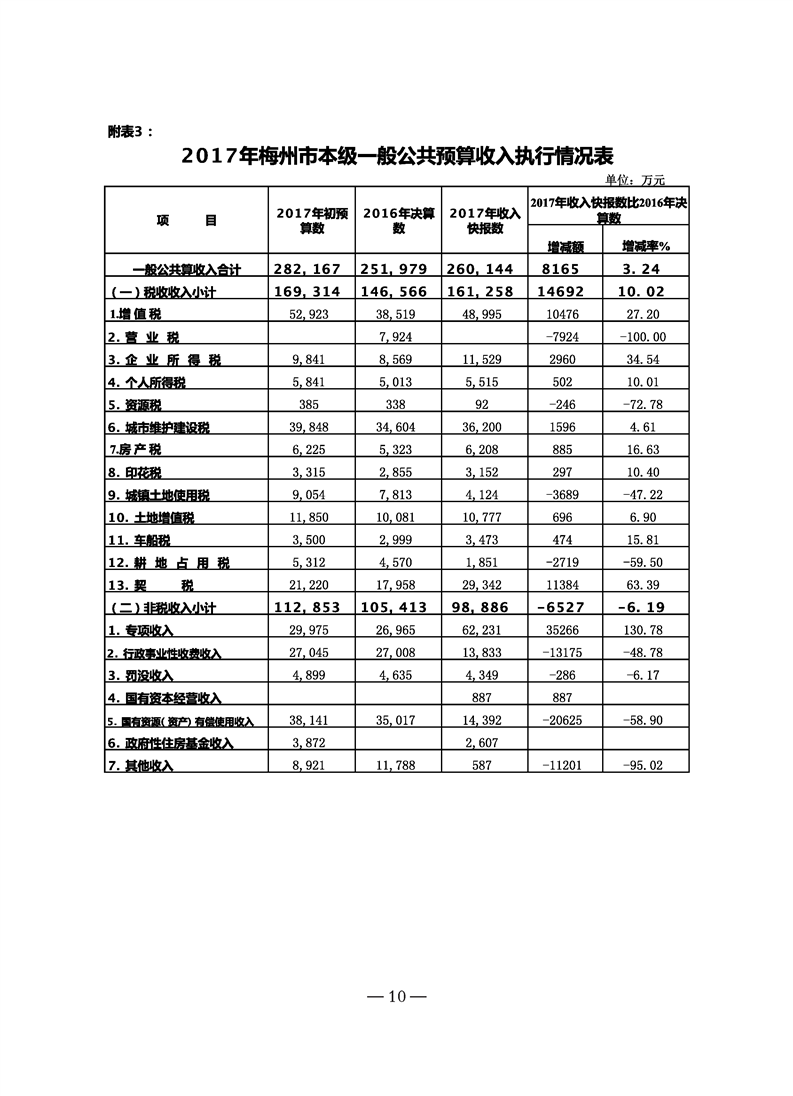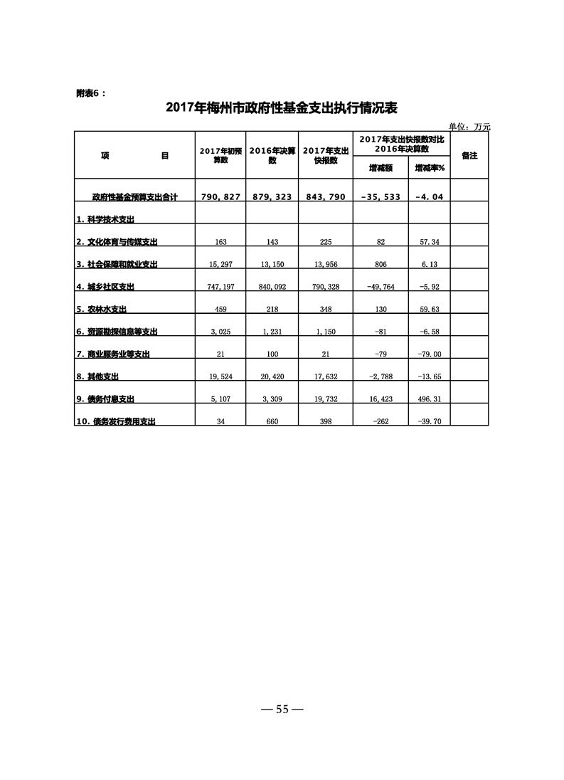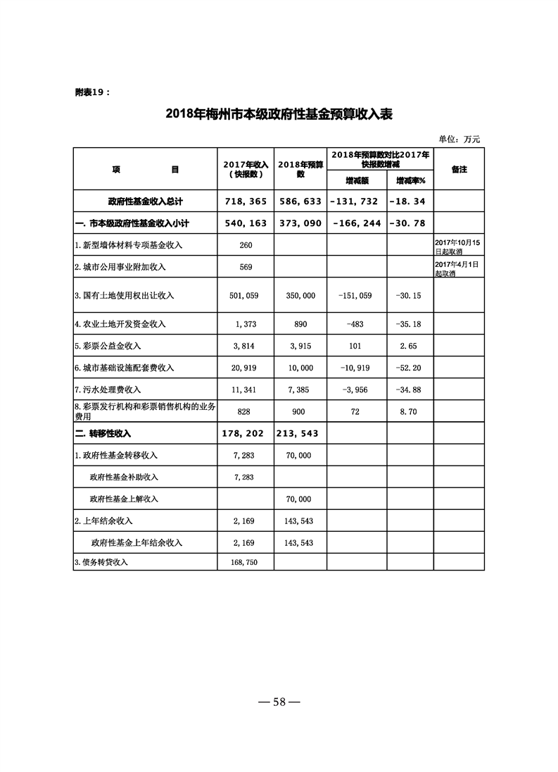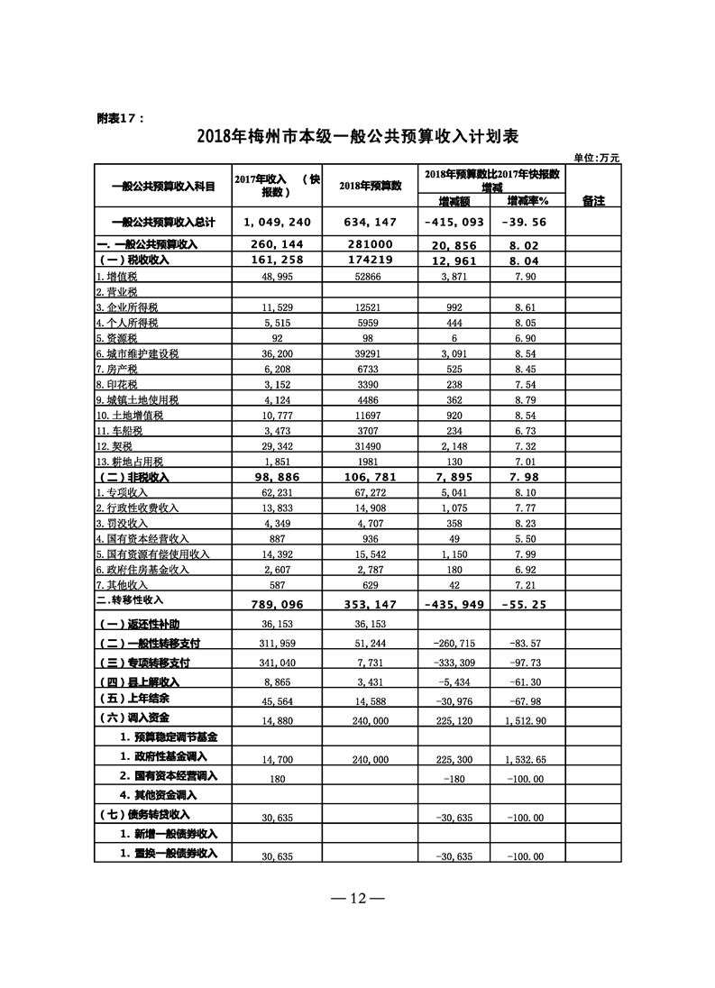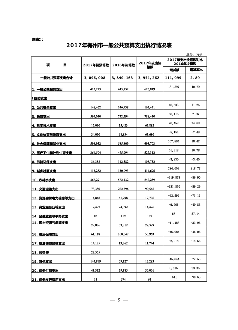 梅州市2017年預算執行情況和2018年預算草案報告附件