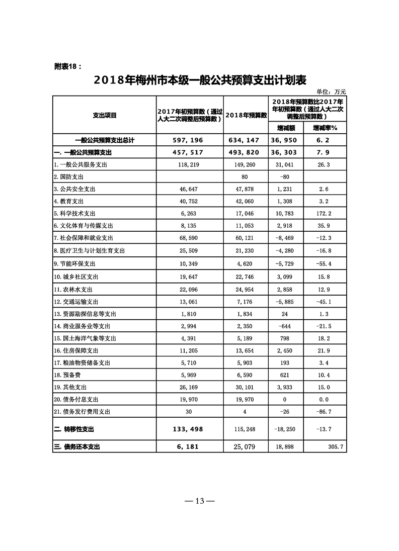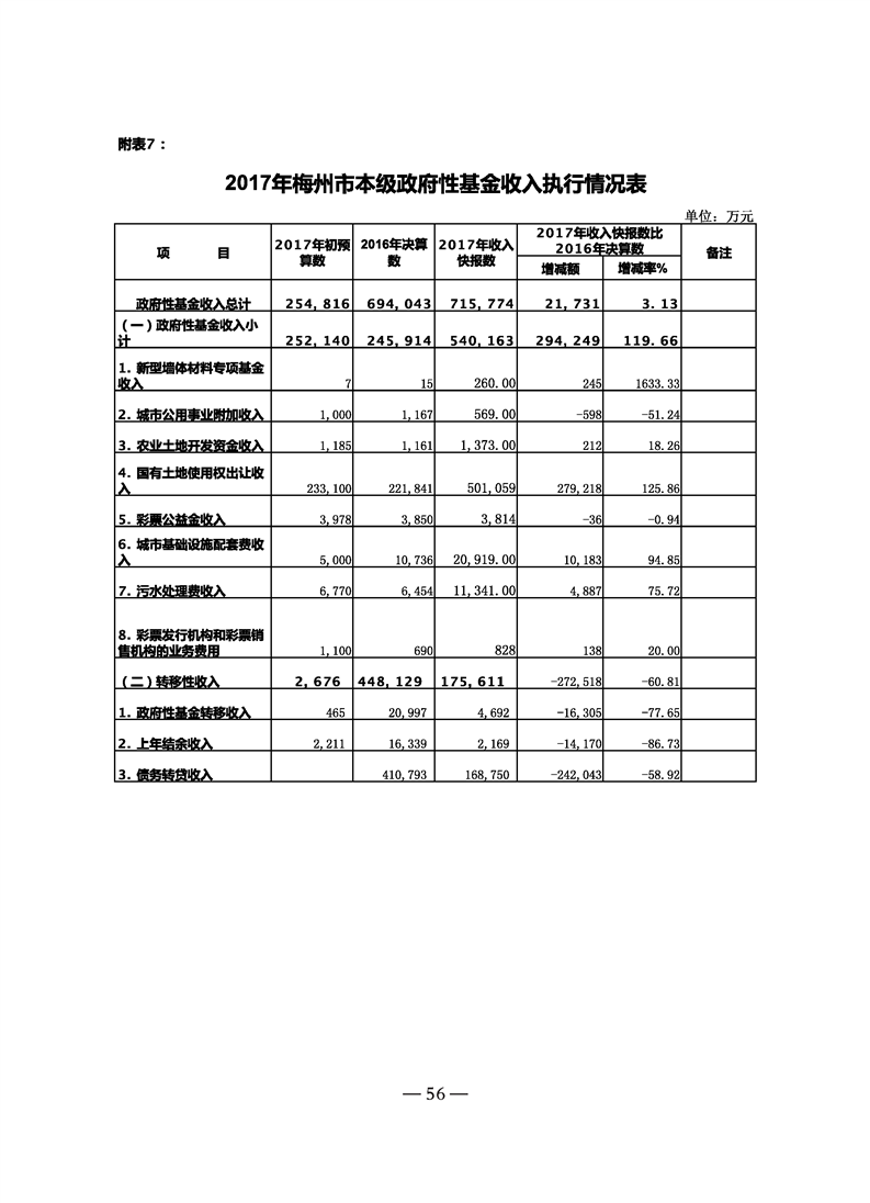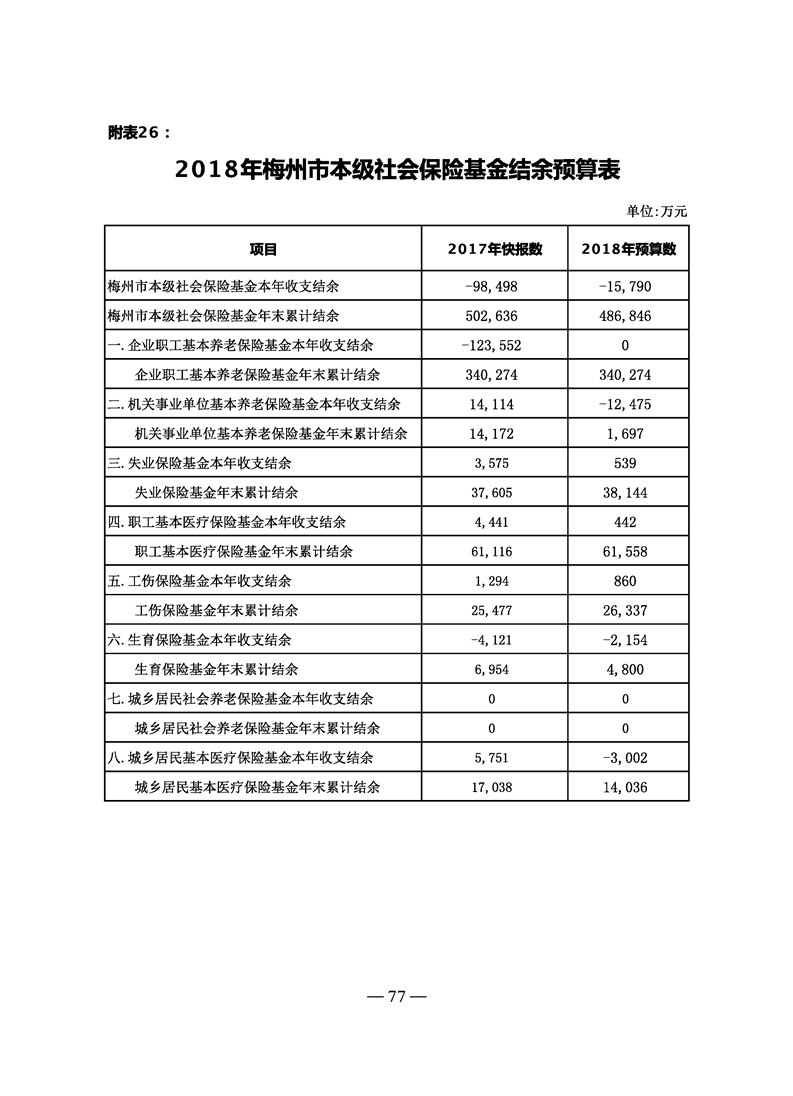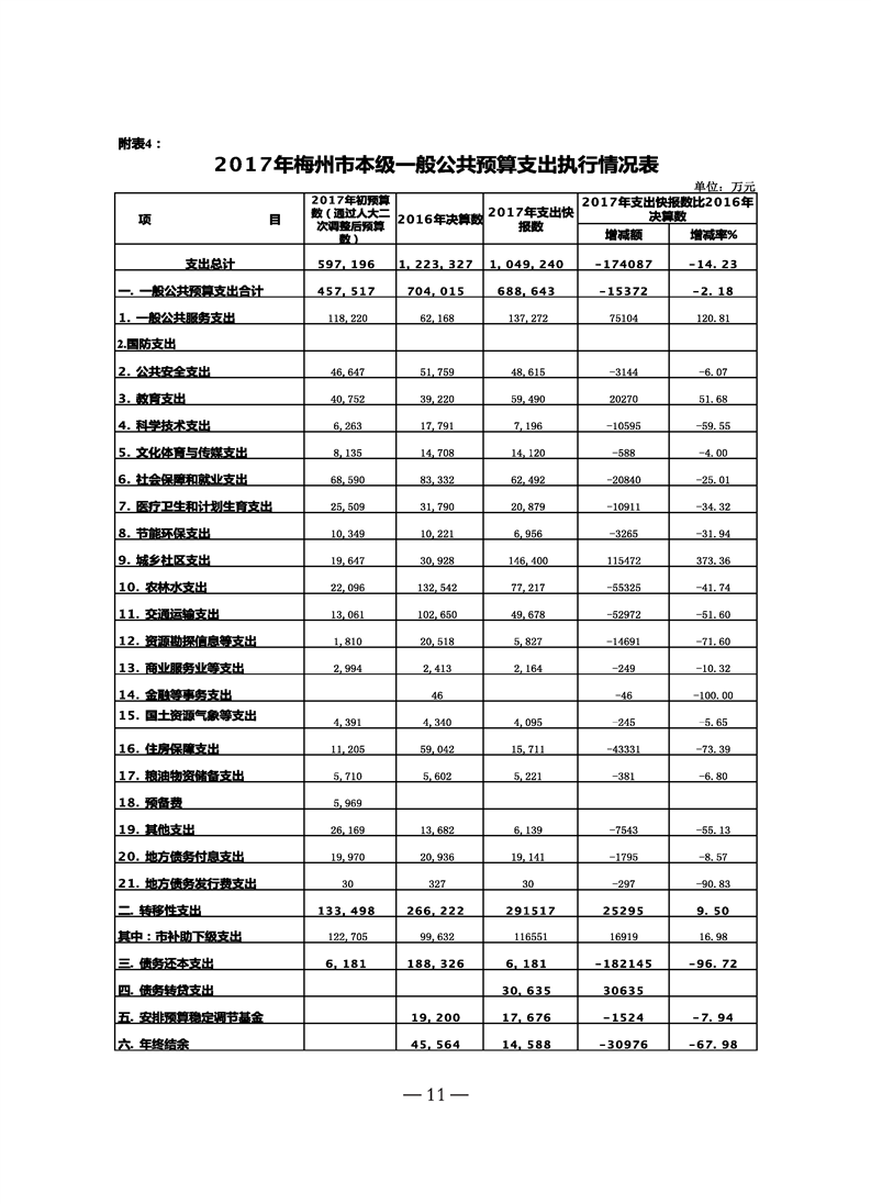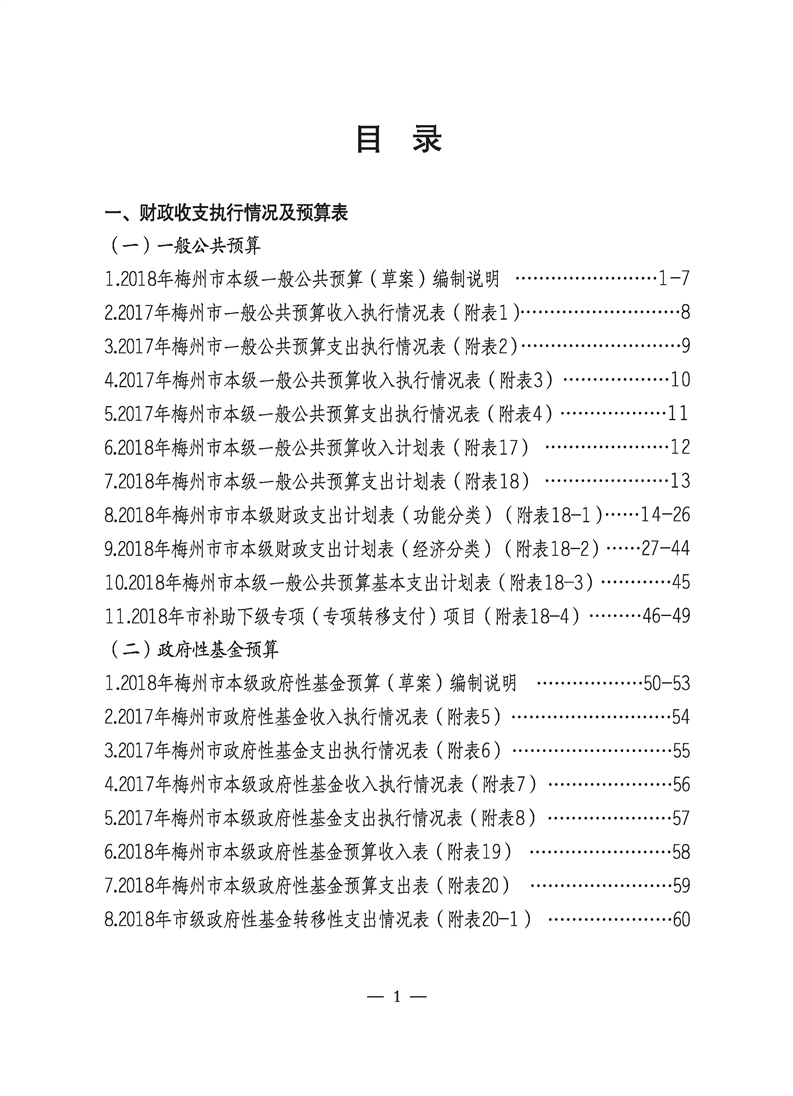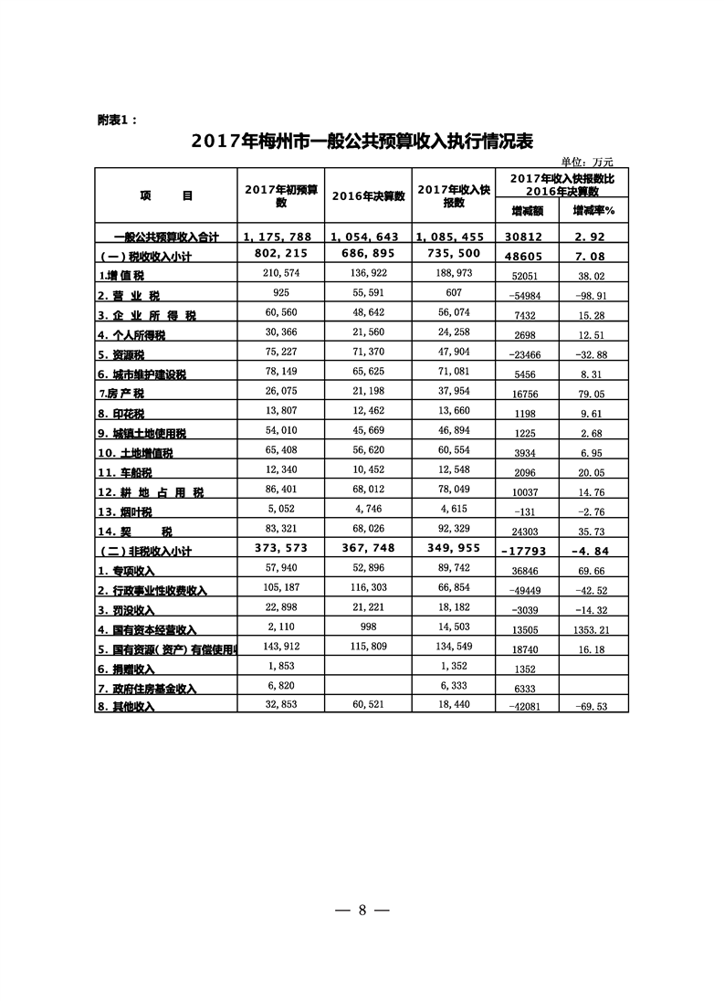 梅州市2017年預算執行情況和2018年預算草案報告附件