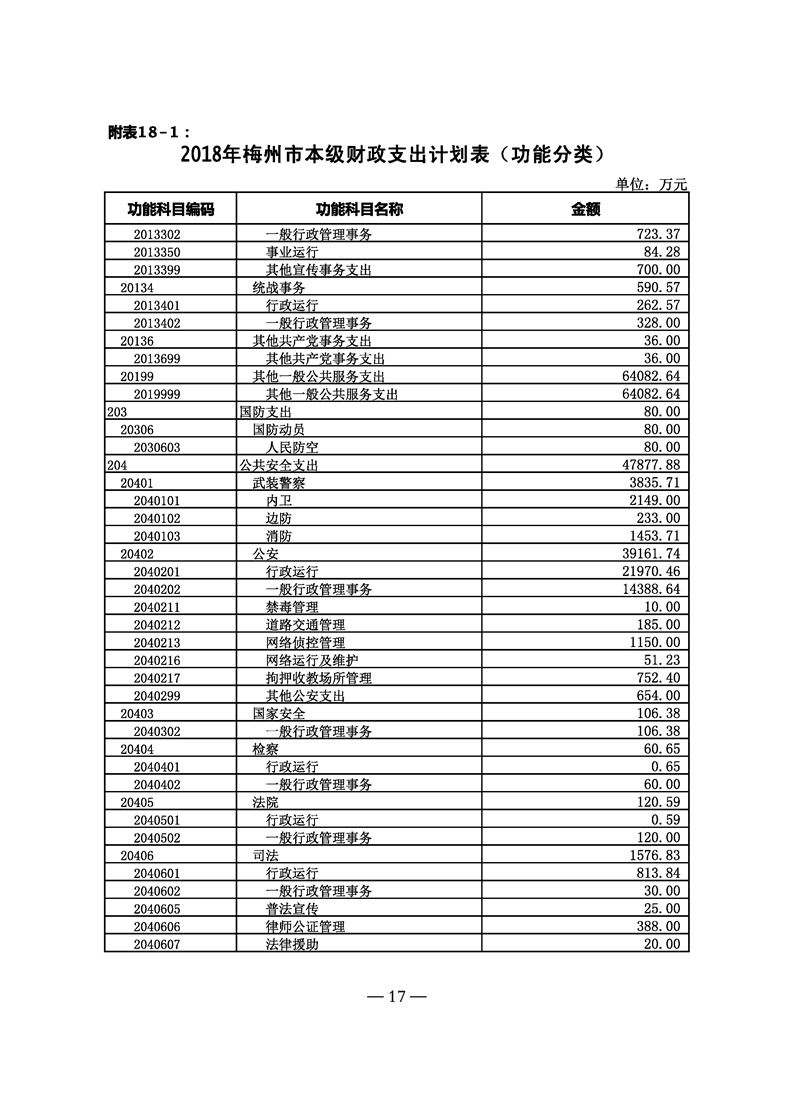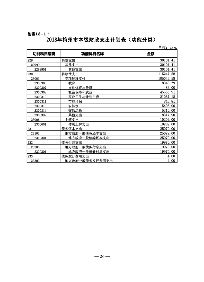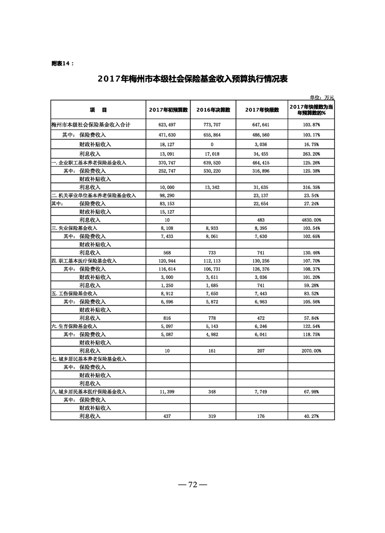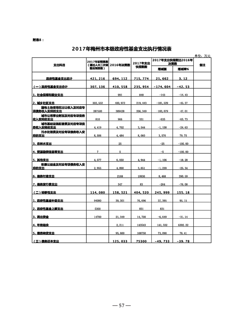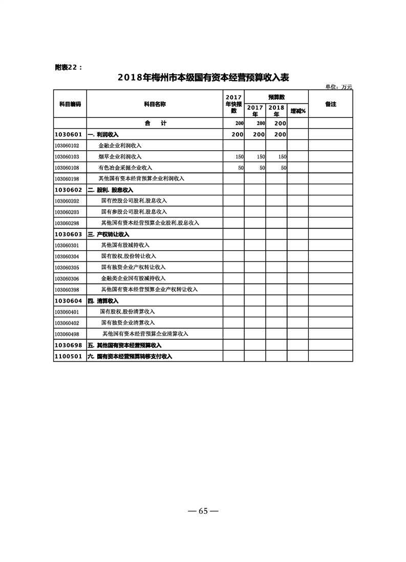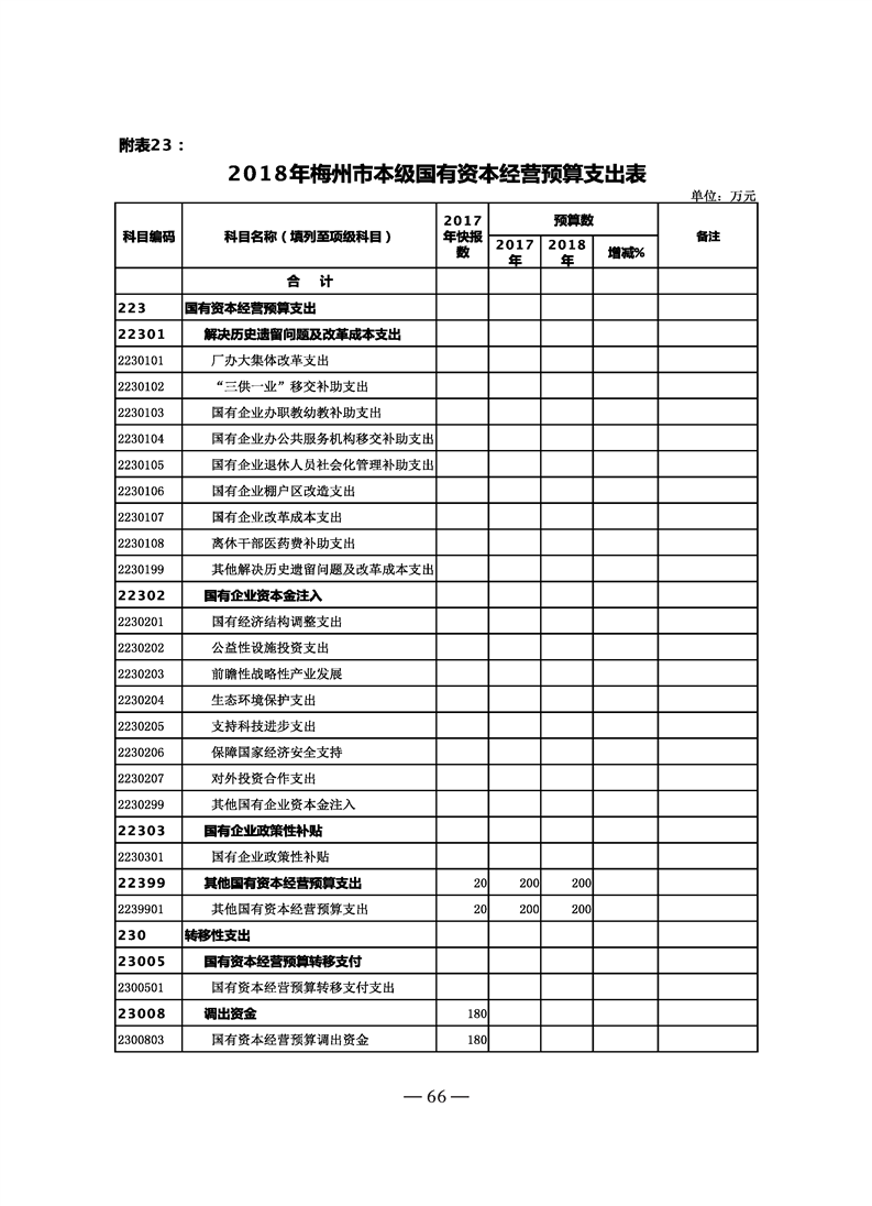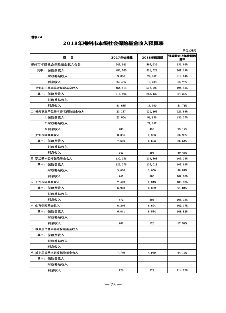 梅州市2017年預算執行情況和2018年預算草案報告附件