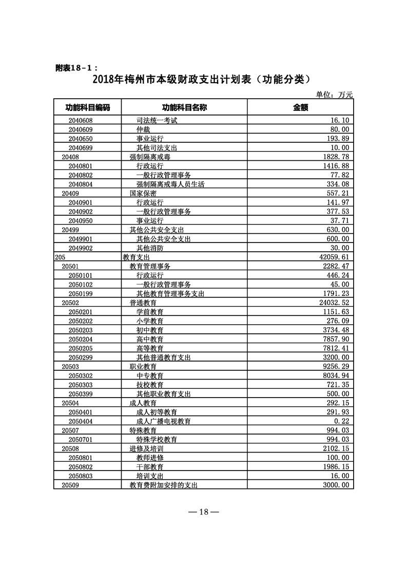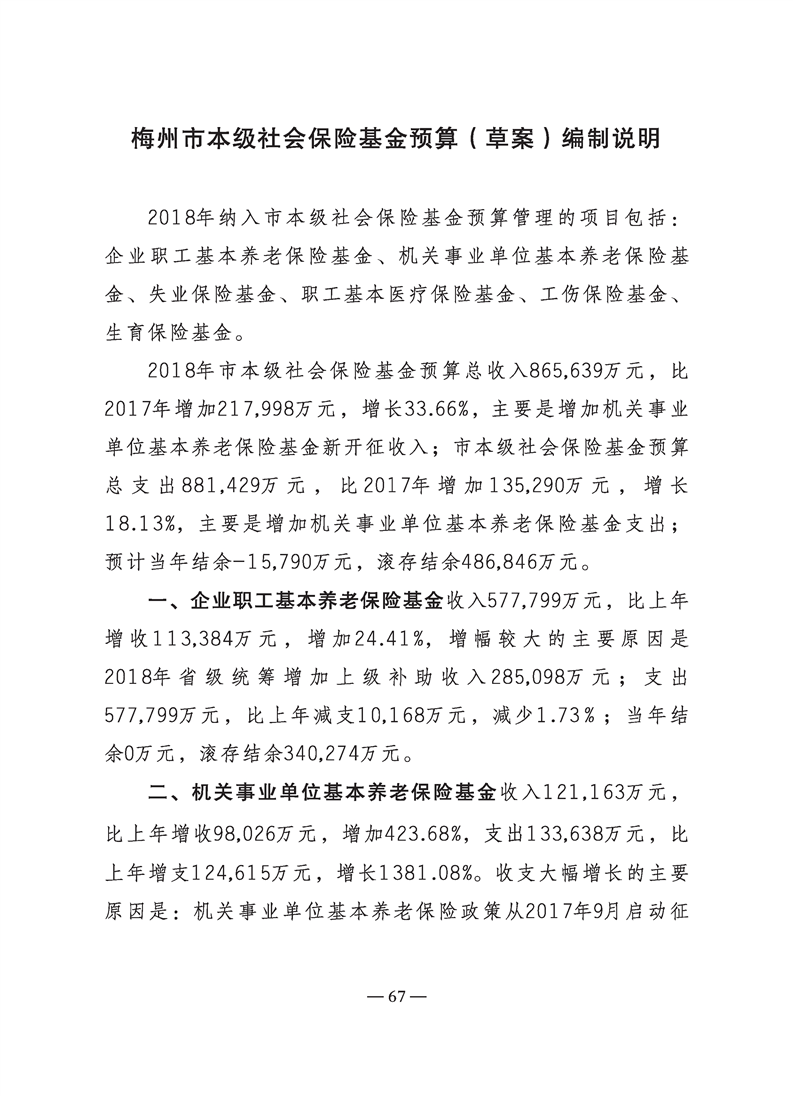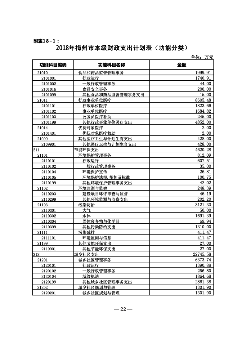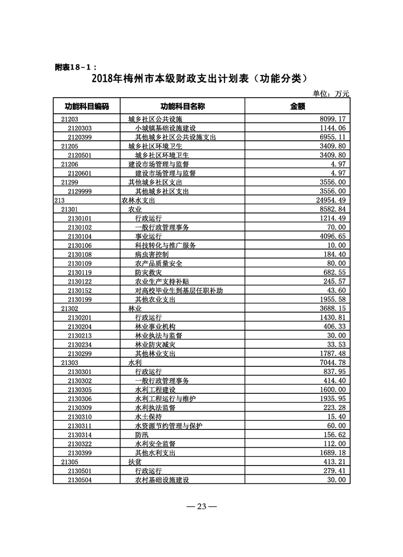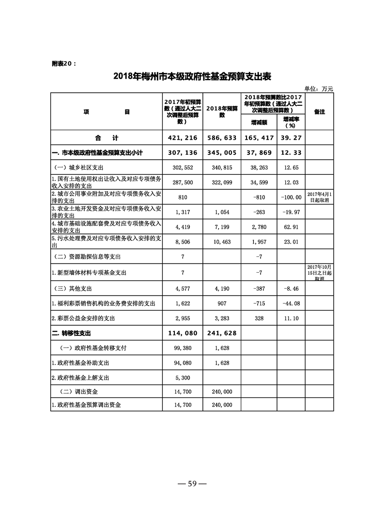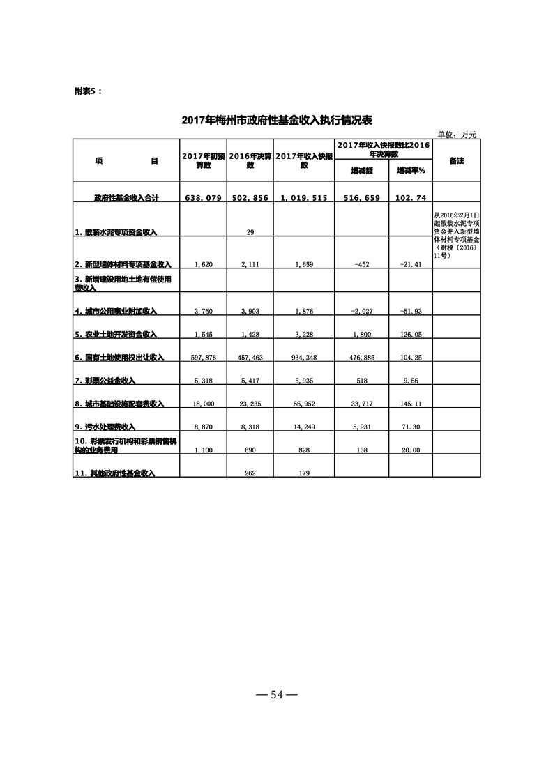 梅州市2017年預算執行情況和2018年預算草案報告附件