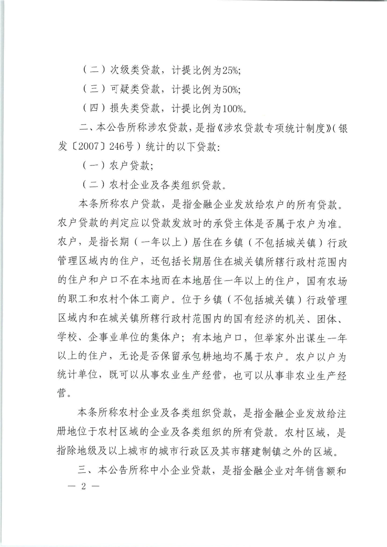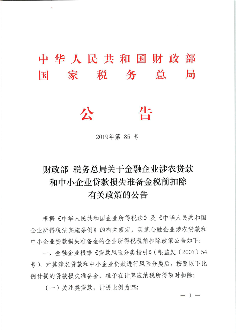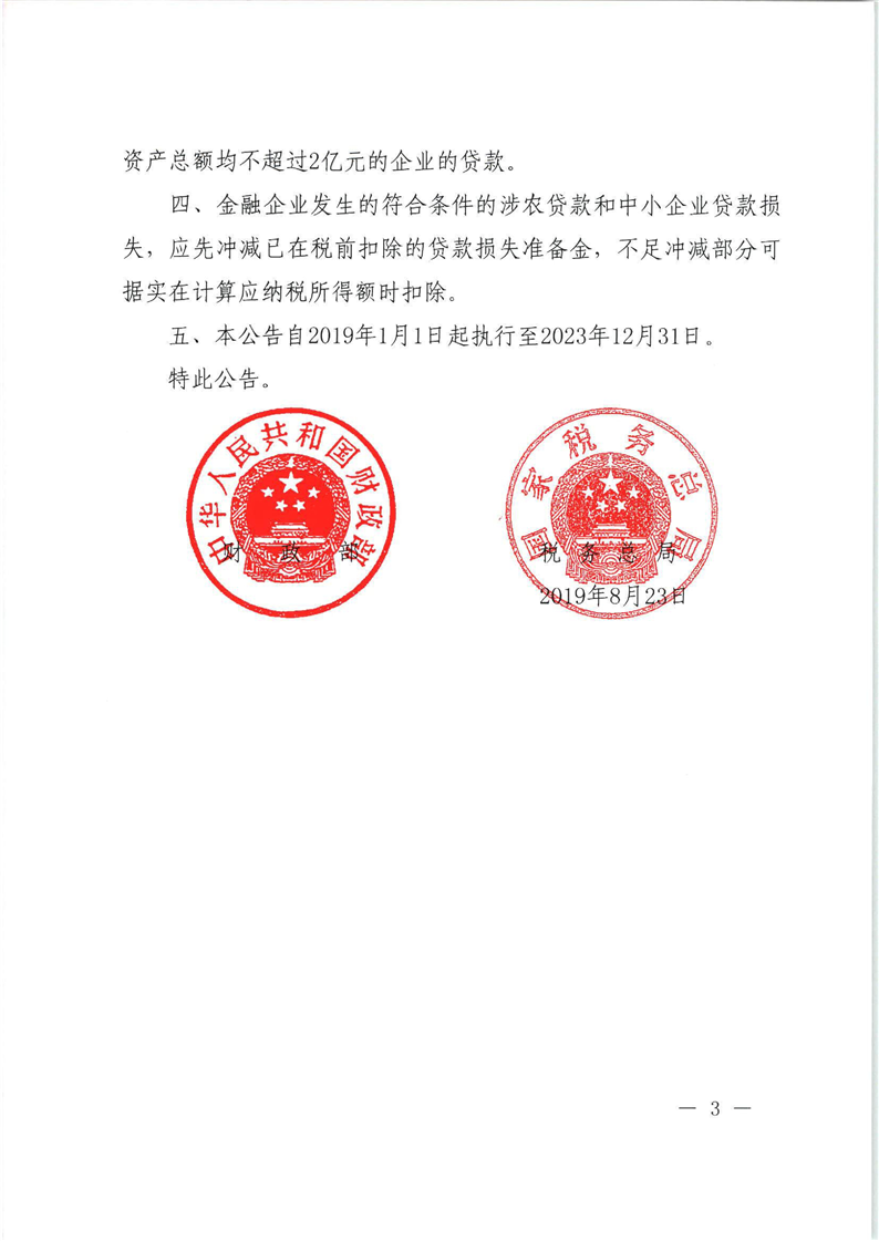 財政部 稅務總局關於金融企業涉農貸款和中小企業貸款損失準備金稅前扣除有關政策的公告