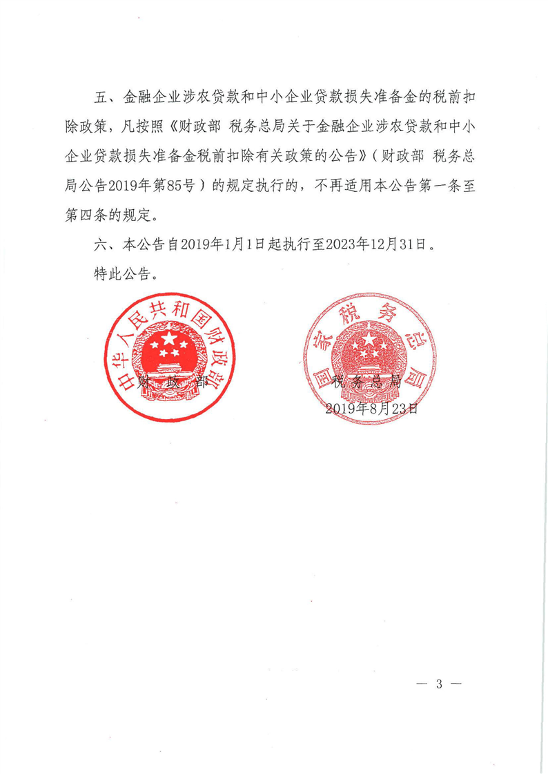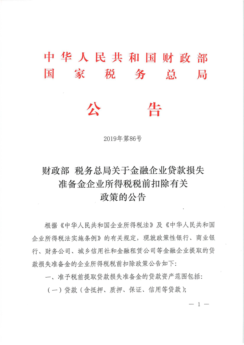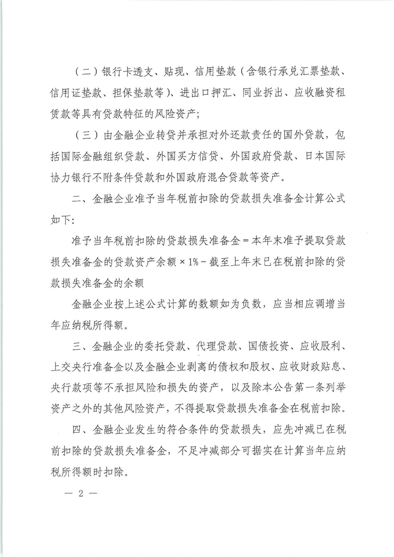 財政部 稅務總局關於金融企業貸款損失準備金企業所得稅稅前扣除有關政策的公告