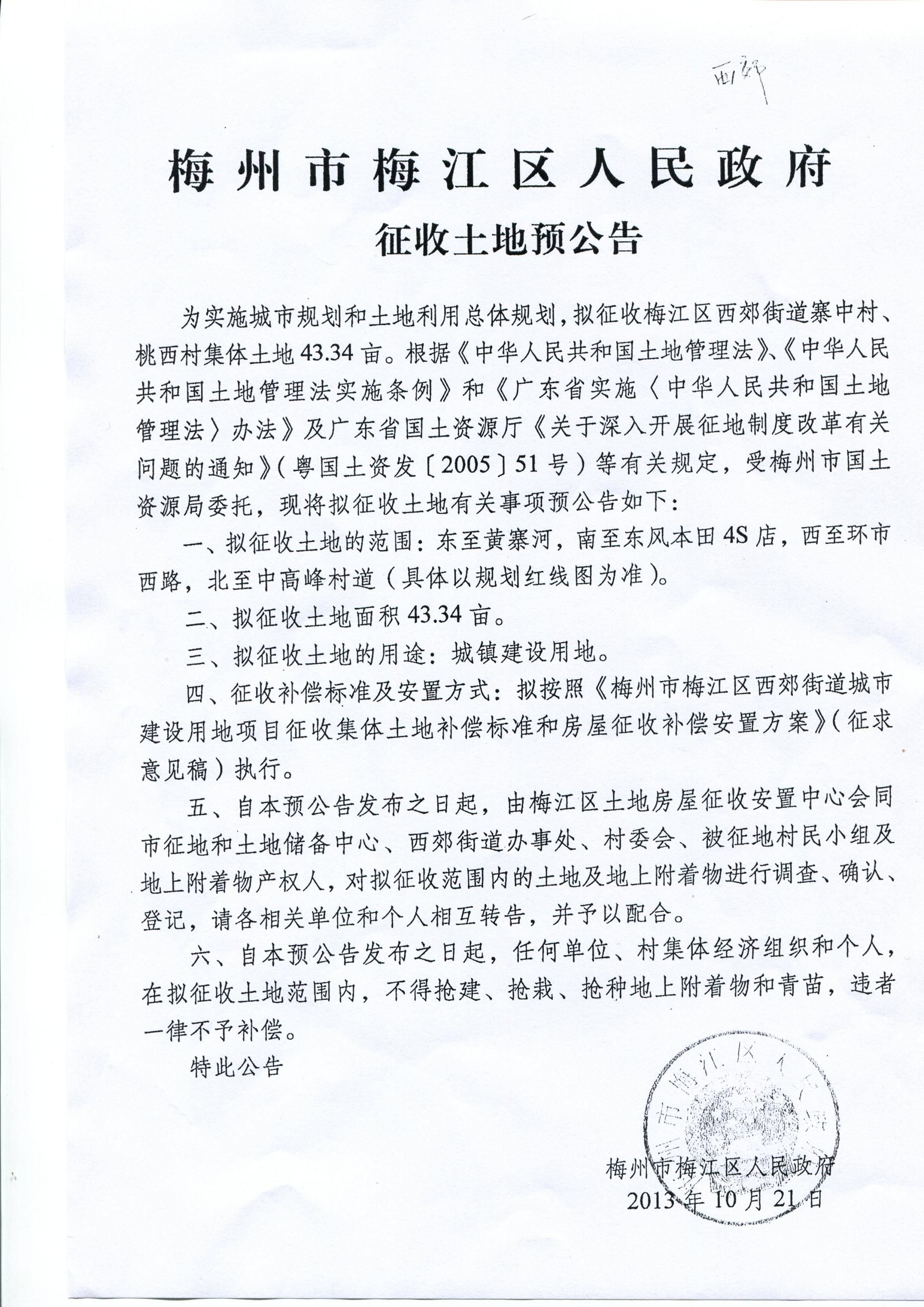 梅江區人民政府征收土地預公告