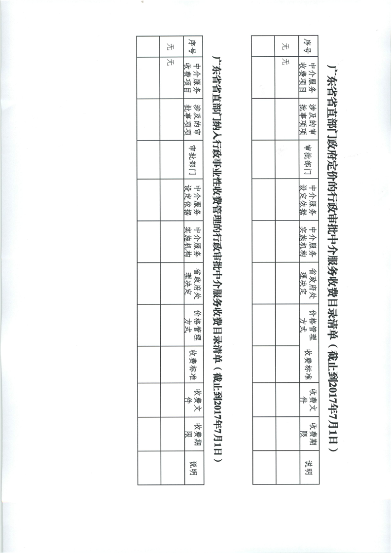廣東省省直部門政府定價的行政審批中介服務收費目錄清單(2017.07.01)