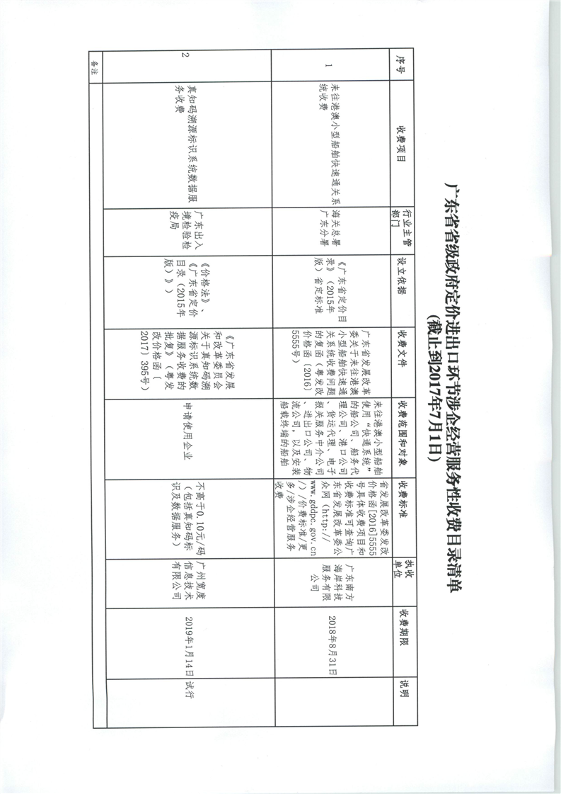 廣東省省級政府定價進出口環節涉企經營服務性收費目錄清單(2017.07.01)
