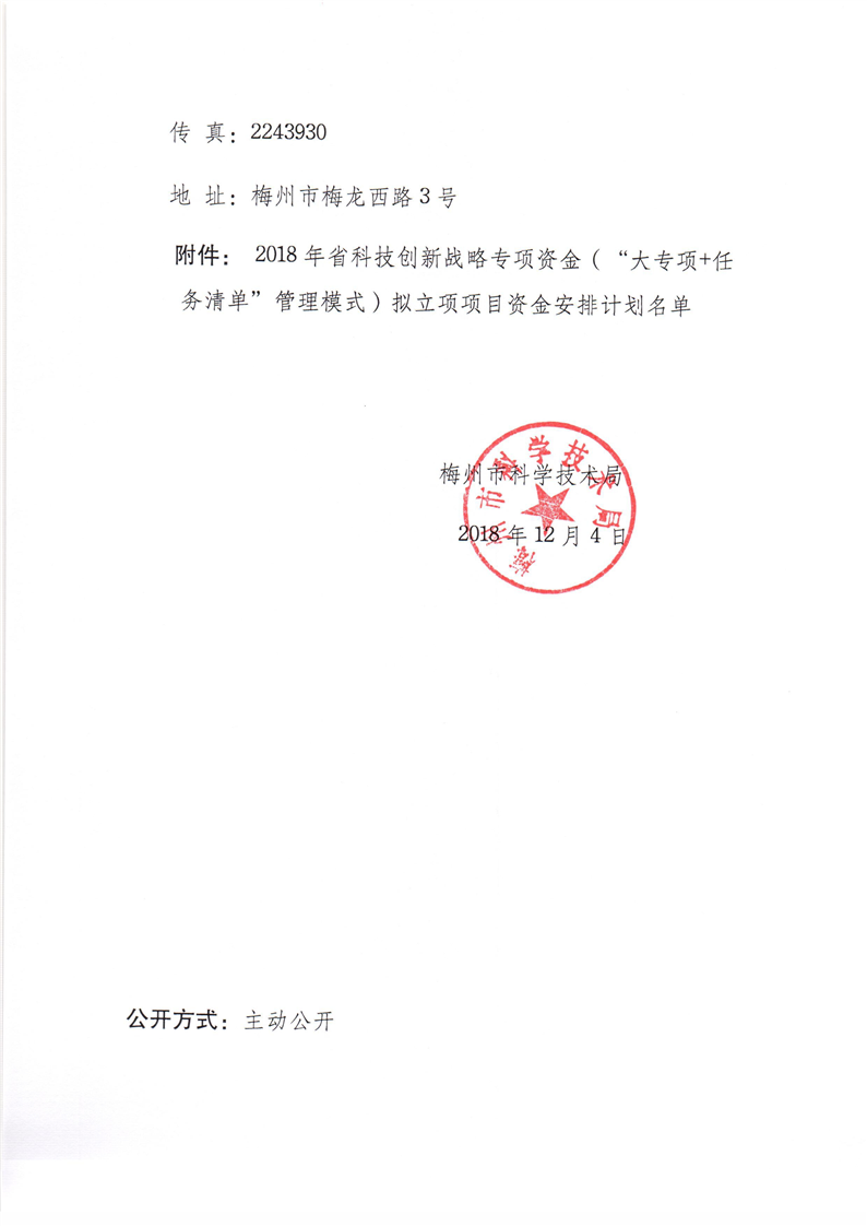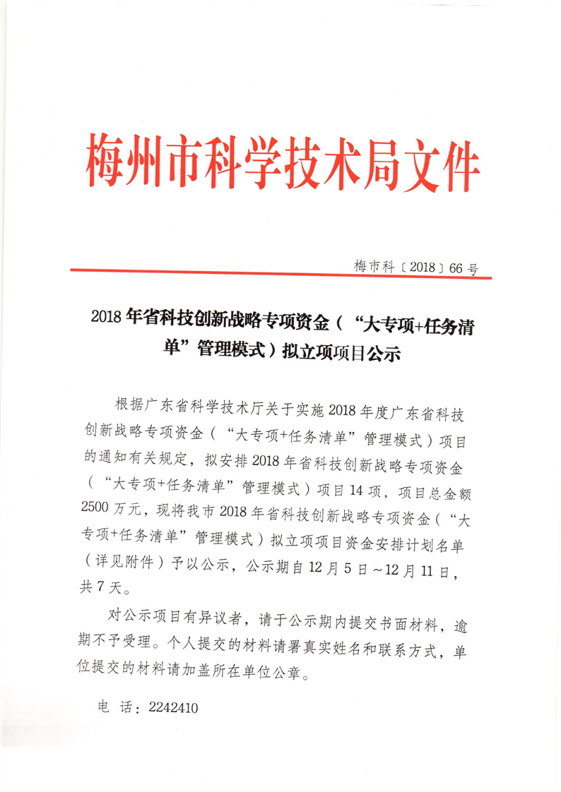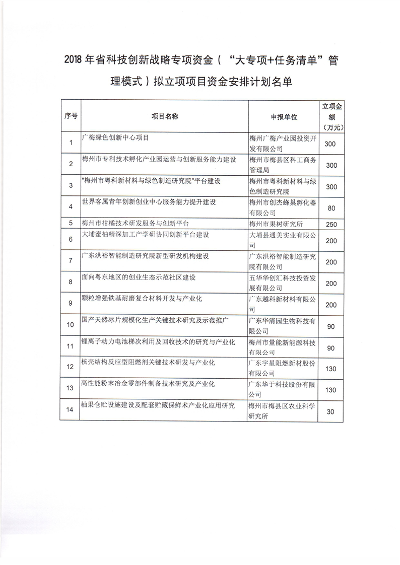 2018年省科技創新戰略專項資金(“大專項+任務清單”管理模式)擬立項項目公示