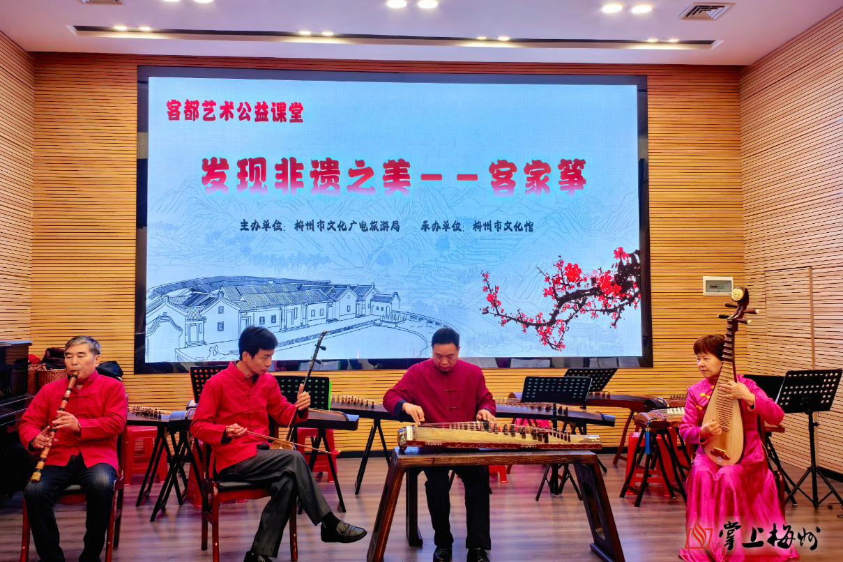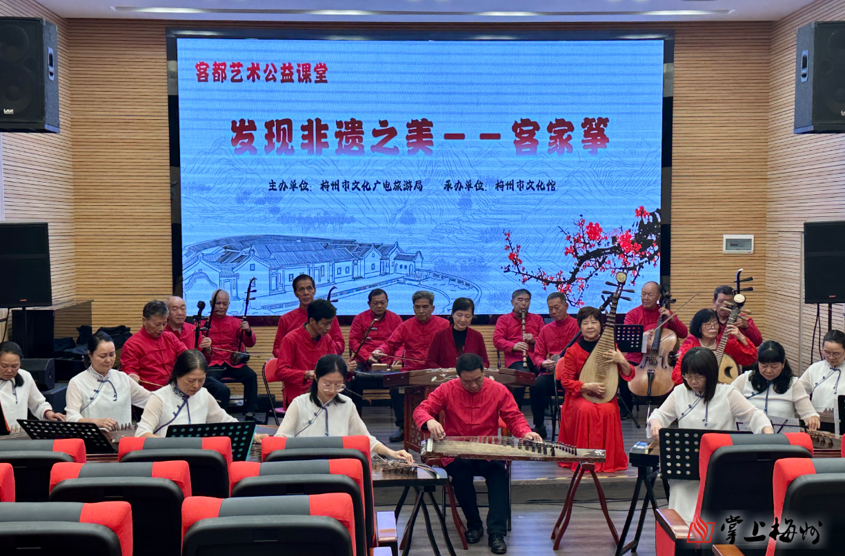 11月30日上午,由梅州市文化廣電旅遊局主辦、梅州市文化館承辦的11月客都藝術公益課堂“發現非遺之美——客家箏”活動,在梅州市文化館群星劇場圓滿結束。