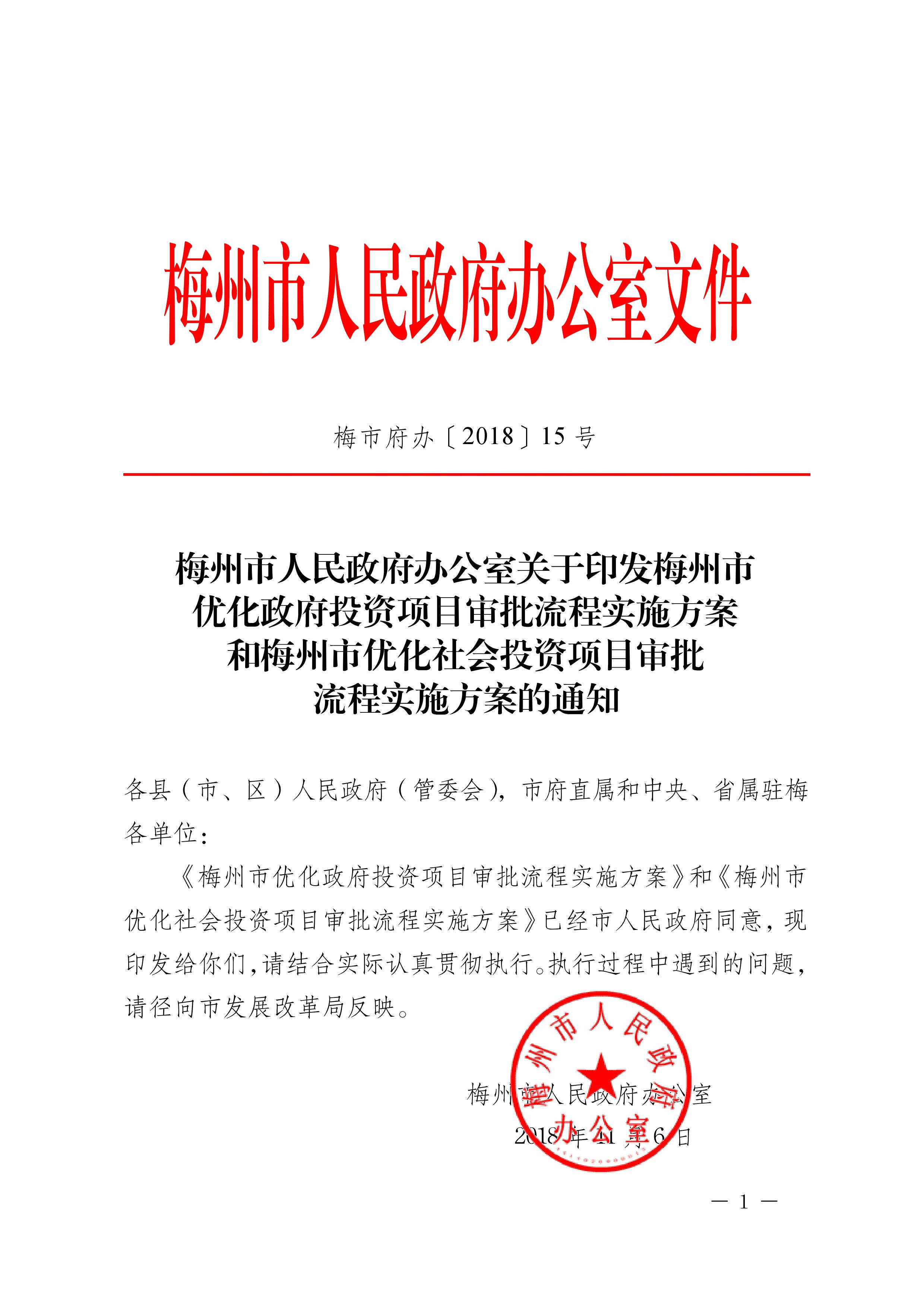 《梅州市優化政府投資項目審批流程實施方案》和《梅州市優化社會投資項目審批流程實施方案》已經市人民政府同意,現印發給你們,請結合實際認真貫徹執行。執行過程中遇到的問題,請徑向市發展改革局反映。