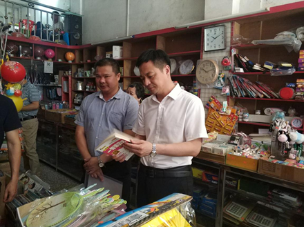 4月30日,在縣委常委、縣宣傳部部長林劍和縣“掃黃打非”工作小組的帶領下,我局會同縣文化廣電旅遊體育局、縣公安局、縣住建局城管、縣民宗局、縣電視台依次到豐順縣萬裏書店、豐順縣清華書店、豐順縣西市場書攤等地進行“掃黃打非”聯合執法行動。