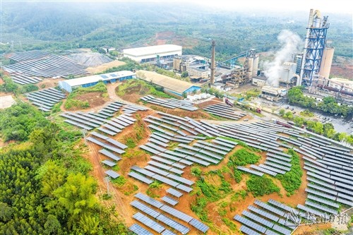 在梅州金塔水泥有限公司光伏發電項目建設現場,記者看到,莽莽山坡上,排列整齊的光伏板一眼望不到頭,像是走進一片“藍色海洋”。待太陽露臉,這一塊塊光伏板便可將太陽能源源不斷地轉化為電能。“此次分布式光伏發電項目建設規模為10.085兆瓦,總投資3630萬元,共設置了18000多塊光伏板。” 塔牌集團副總經理劉延東告訴記者,為踐行企業綠色、低碳、可持續發展的生產理念,進一步推動實現“碳達峰”“碳中和”,塔牌集團首次進軍光伏領域,在梅州3個基地共建設有35兆瓦規模的光伏發電儲能一體化項目。項目采取“就近接入、自發自用、餘電上網”的方式大幅減少企業外購用電成本,促進清潔生產,低碳生產,降低能源消耗和碳排放,切實增強該公司水泥主業核心競爭力。