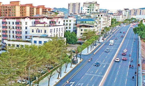 經過改造後的平城南路交通標識規範完善,道路通行更加順暢。(圖片來源:梅州日報 袁誌鵬 攝)