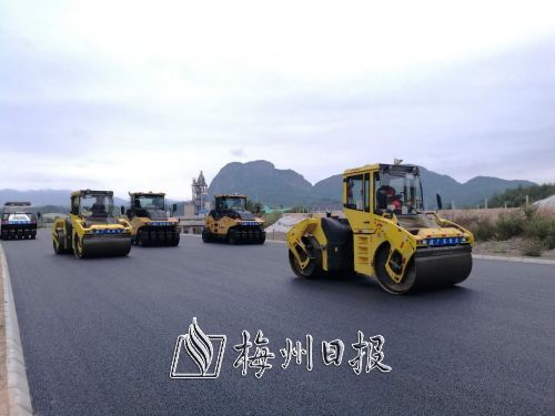 梅平高速瀝青路麵攤鋪。(圖片來源:梅州日報)